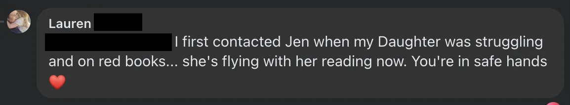 As soon as you join, you'll gain access to the Raising Readers Facebook group, only for members of this course. In there, you can celebrate any wins or ask any questions you may have and myself and other members of the community will be there to celebrate with you or support you when needs be!